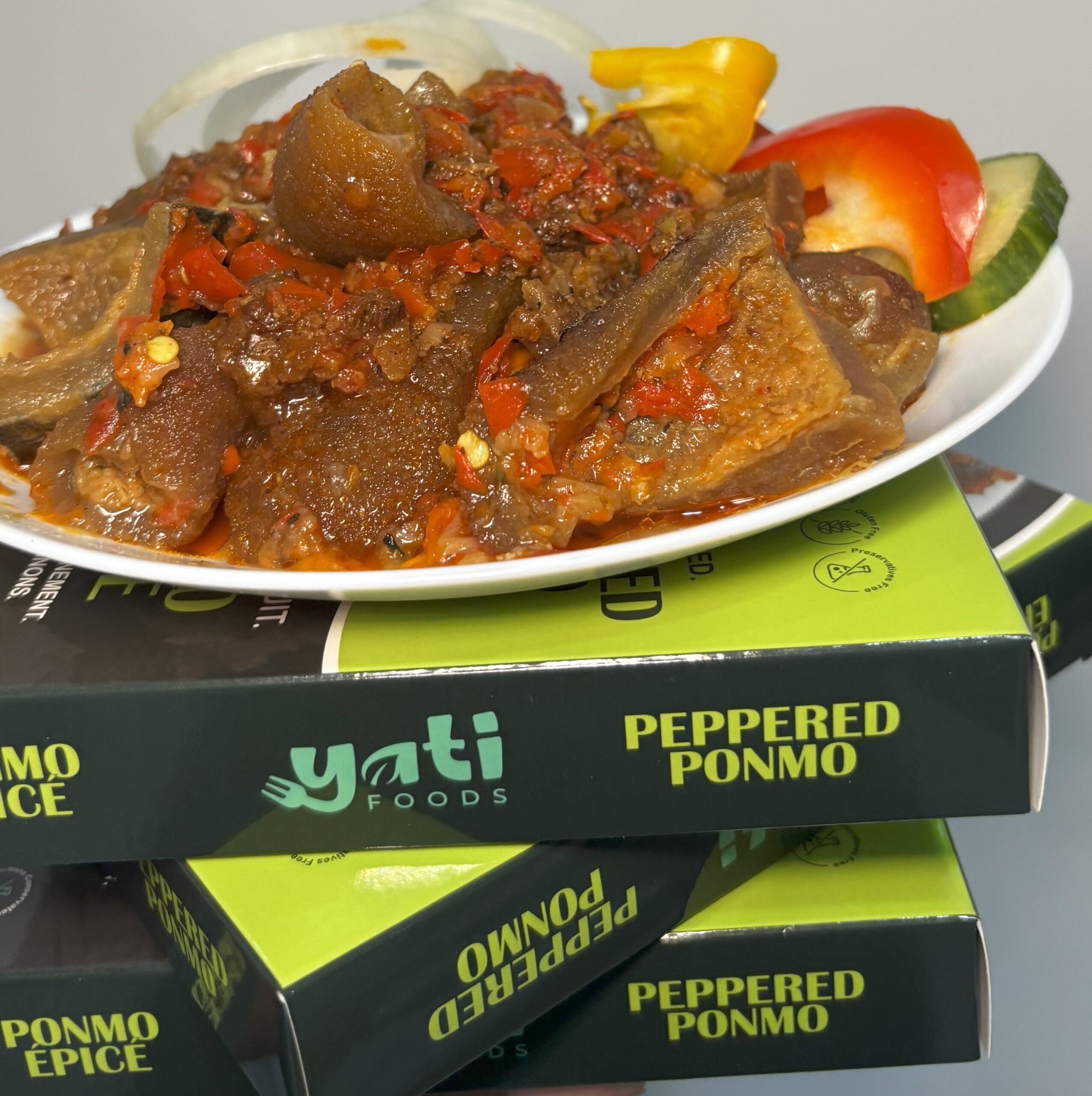 Soft, tasty Ponmo cooked in spicy Nigerian sauce.Enjoy alone or with your favourite meal.